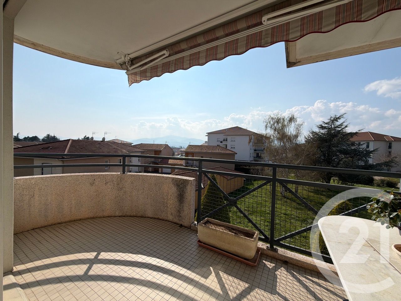 Cette appartement dispose d'un séjour exposé sud ouest avec balcon et terrasse , une cuisine séparée, une buanderie, deux chambres et des toilettes séparés.